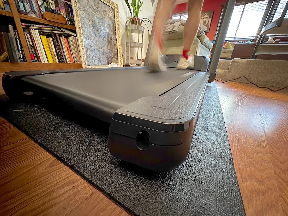 My only gripe is that it does not fold so it does take up quite a bit of space. Fortunately since the deck is so low it is pretty much out of the way and can be slid under the couch if I do need a few extra inches of floor space. This is not a huge deal in our home as the treadmill lives in a part of the house we typically do not spend much time in.